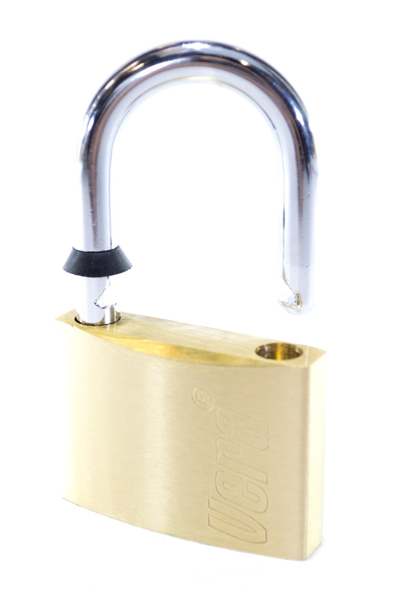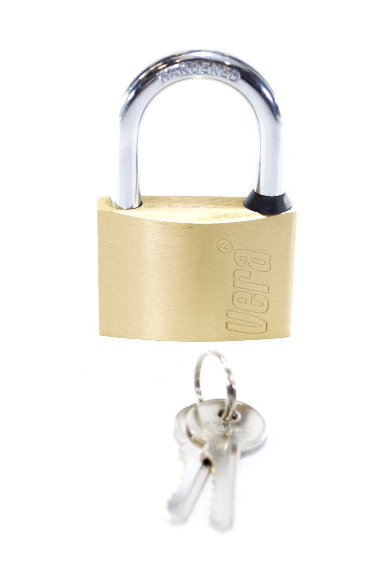 Candado plano italiano de latón, diseñado para aplicaciones residenciales y comerciales. Cuerpo y cilindro en latón macizo para mayor resistencia y durabilidad. Cuenta con arco estándar de acero templado y endurecido con doble bloqueo, proporcionando mayor seguridad. Equipado con pasadores de latón y resortes de acero inoxidable, lo que garantiza un alto desempeño incluso en ambientes agresivos. Incluye dos llaves