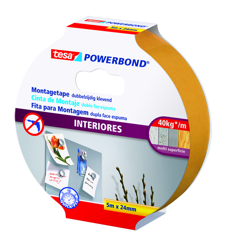 Cinta doble faz de uso interior para el montaje permanente de objetos sobre superficies lisas y rugosas. Soporte de espuma y adhesivo de caucho sintético para una fuerte adhesión de objetos planos con pesos de hasta 4 kg por cada diez centímetros de cinta. Resistente al deslizamiento. Excelente fuerza de cizallamiento y resistencia a las cargas. no se amarillea con el tiempo.