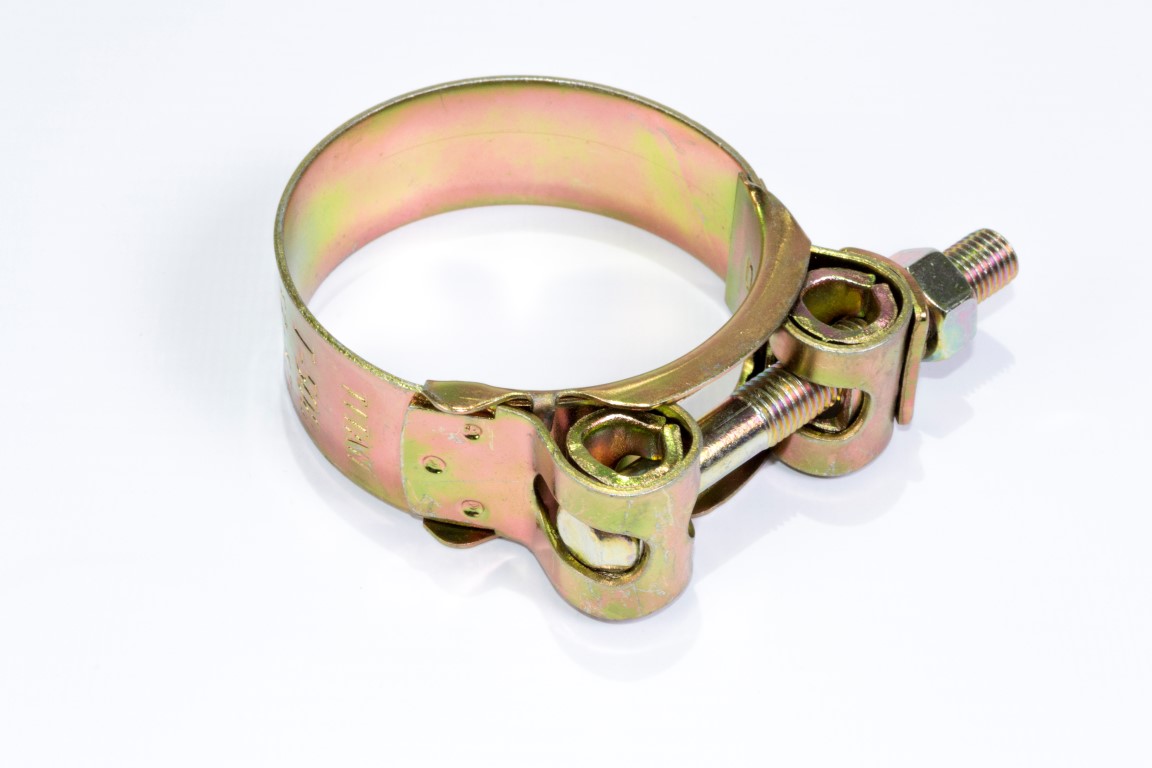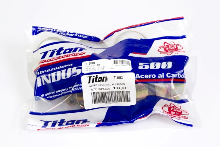 Abrazadera Industrial Acero Al Carbon. Arandela reforzada de doble funcion, tubos de alta resistencia, tuerca de seguridad. Fleje al carbon de alta resistencia. Soldadura antidesgarre.