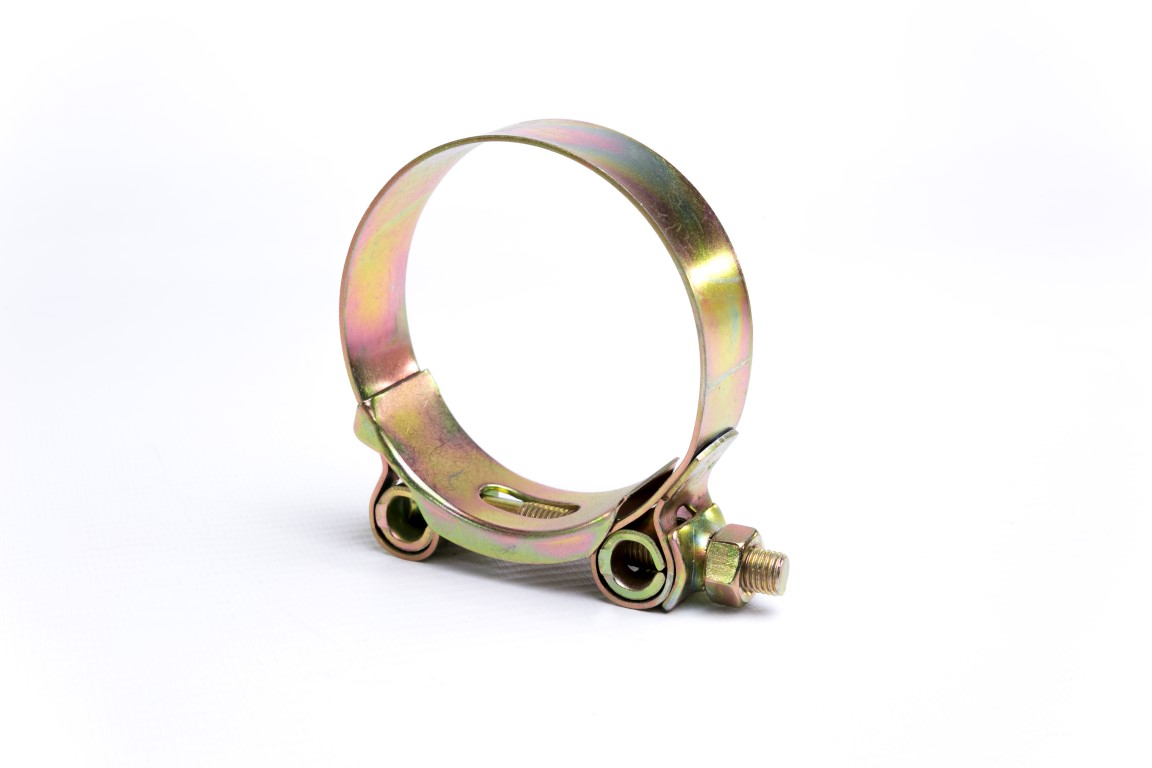 Abrazadera Industrial Acero Al Carbon. Arandela reforzada de doble funcion, Tubos de alta resistencia, Tuerca de seguridad. Fleje al carbon de alta resistencia. Soldadura antidesgarre.