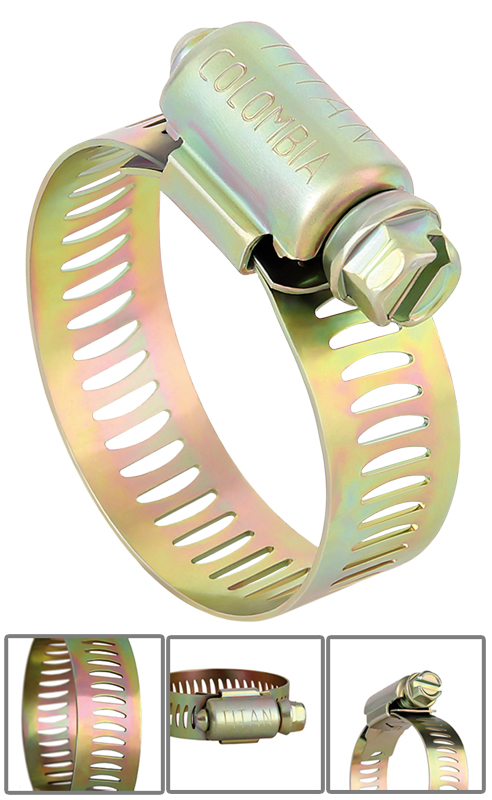 Abrazadera en acero al carbon W1. Tornillo sin fin con cabeza hexagonal de 8mm para destornillador de punta pala y copa. Grapa reforzada de calibre 1.1. mm. Ancho de fleje 12.7 mm. 100% acero al carbon.
