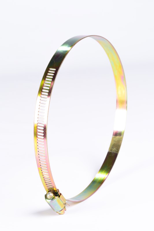 Abrazadera en acero al carbon W1 Tornillo sin fin con cabeza hexagonal de 8mm para destornillador de punta pala y copa. Grapa reforzada de calibre 1.1. mm Ancho de fleje 12.7 mm.. 100% acero al carbon.