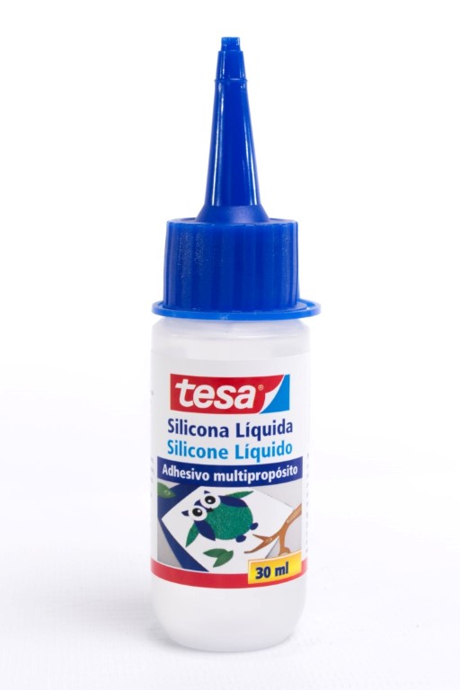 tesa® Silicona líquida de aplicación en frío, es un adhesivo de uso universal para la unión limpia y transparente de diferentes tipos de materiales en trabajos decorativos, manuales y de marquetería Pega: • Papel • Corcho • Foamy • Cuero • Tela • Fieltros • Madera • Cartón • Vidrio Presentación: En plegadiza exhibidora.