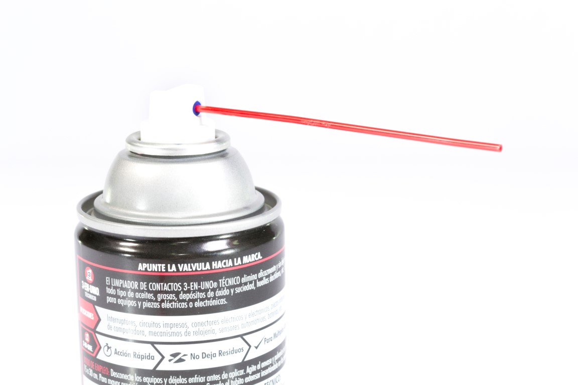El limpiador de contactos aerosol elimina eficazmente y sin dejar rastro, todo tipo de aceites, grasas, depósitos de óxido y suciedad, huellas dactilares, etc., restaurando la continuidad eléctrica en todo tipo de contactos eléctricos y electrónicos. Penetra fácilmente en superficies secándose rápidamente sin dejar residuos. Es dieléctrico y no daña los plásticos.