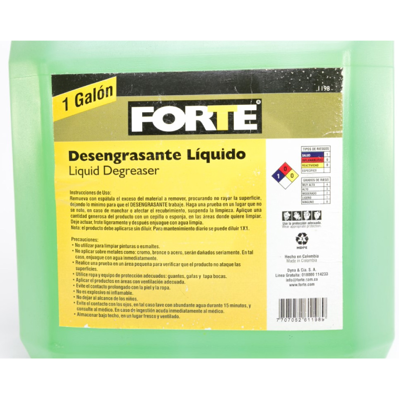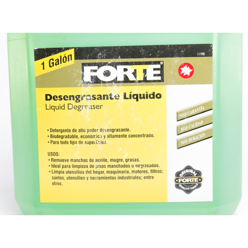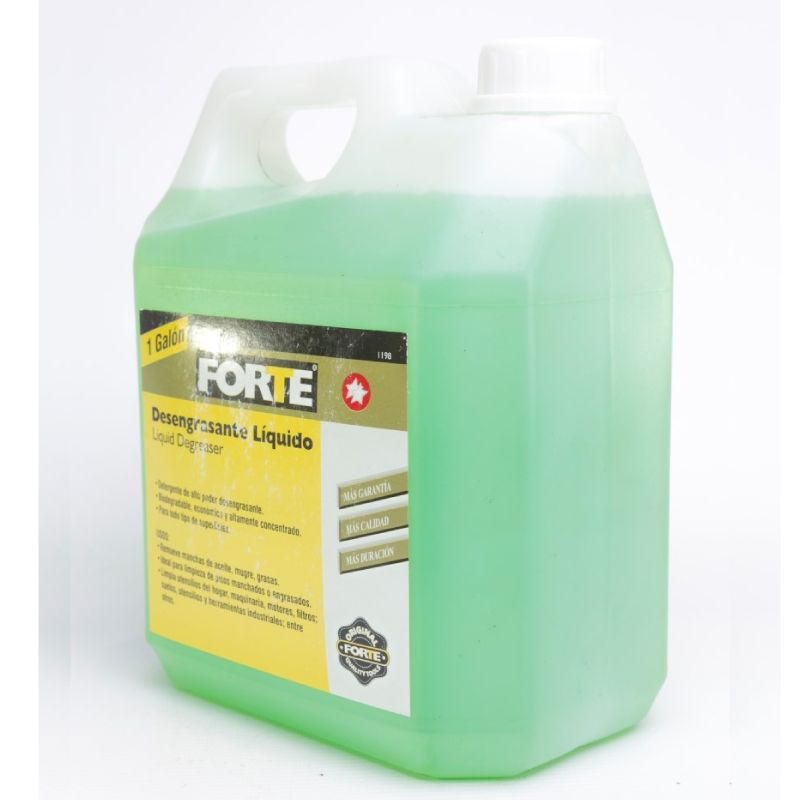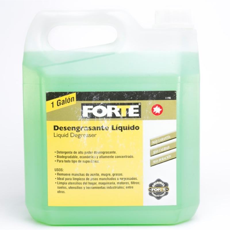 Excento de IVA. Detergente de alto poder desengrasante. Biodegradable, económico y altamente concentrado. Útil para todo tipo de superficies, remueve manchas de aceite, mugre y grasas. Ideal para limpieza de pisos manchados o engrasados. Limpia utensilios del hogar, maquinaria, motores, filtros, suelos, herramientas industriales, entre otros.