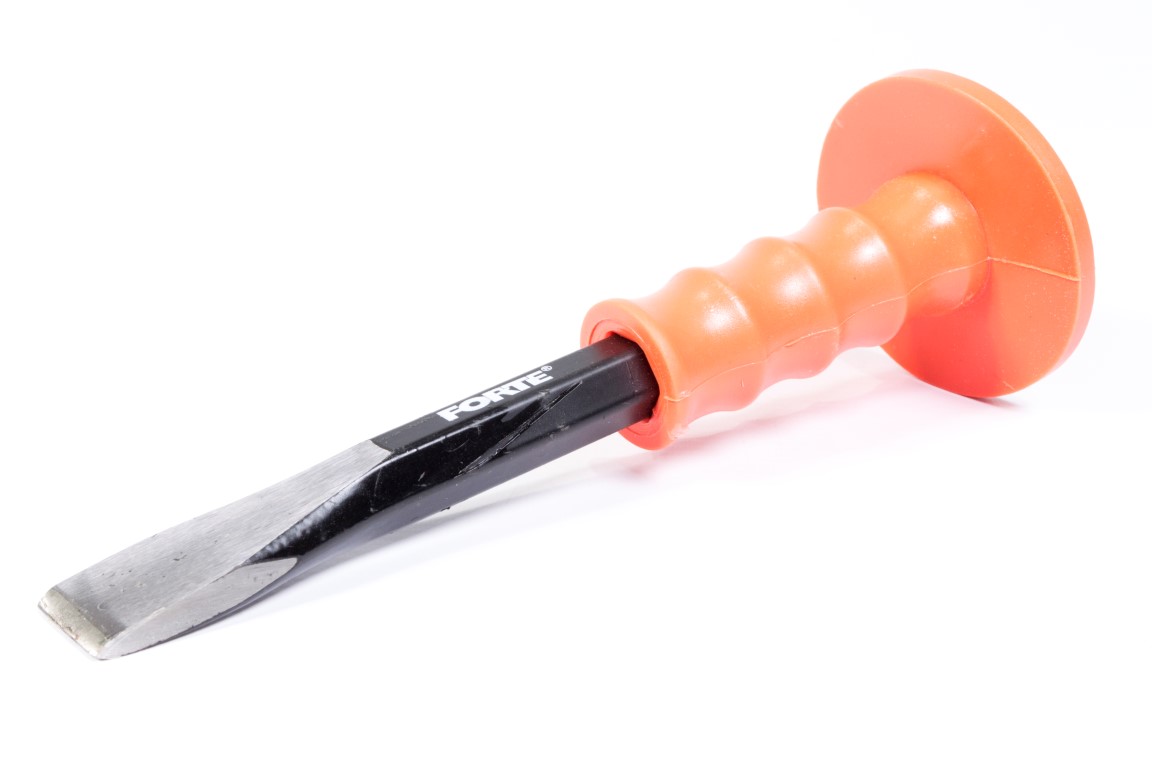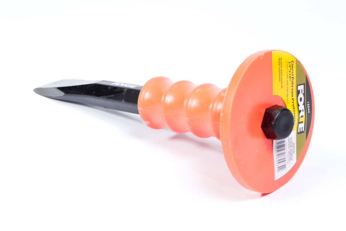Aleación de acero cromo 40 tratado térmicamente con protector y mango ergonómico de caucho. Excelente resistencia mecánica - se utiliza para cortar y marca chapa en frio, para retirar escoria de soldadura eléctrica y para trabajos de construcción y metalmecánica.