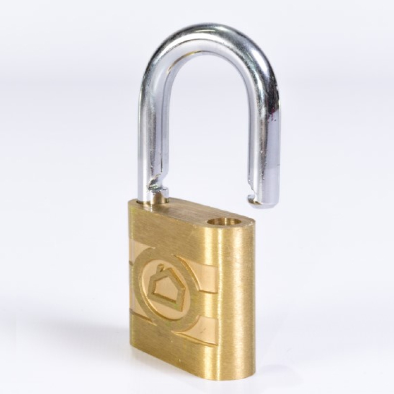 Candado tipo Aleman de cuerpo macizo en latón, diseñado para aplicaciones residenciales y comerciales. Cuenta con cilindro de latón antitaladro y sistema de retención de llave, evitando su extracción mientras el candado está abierto. Su arco de acero templado y endurecido, junto con el doble bloqueo, proporciona mayor seguridad. Equipado con pasadores de latón y resortes de acero inoxidable, lo que garantiza un alto desempeño incluso en ambientes agresivos. Incluye dos llaves en latón.