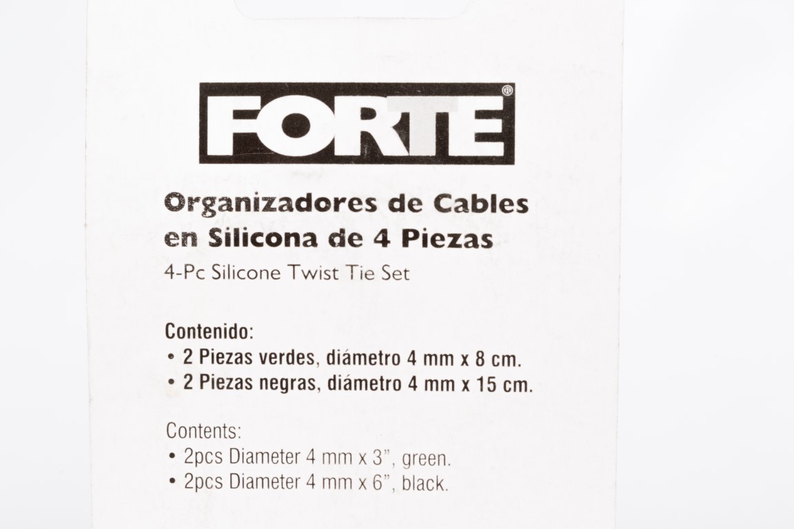 Organizadores de cable en silicona de 4 piezas. Indicado para amarrar y organizar cualquier objeto que lo necesite. Para uso interior y exterior. Reutilizable. Contenido: 2 piezas verdes, diámetro 4.0mm x 3" y 2 piezas negras, diámetro 4.00mm x 8cm.