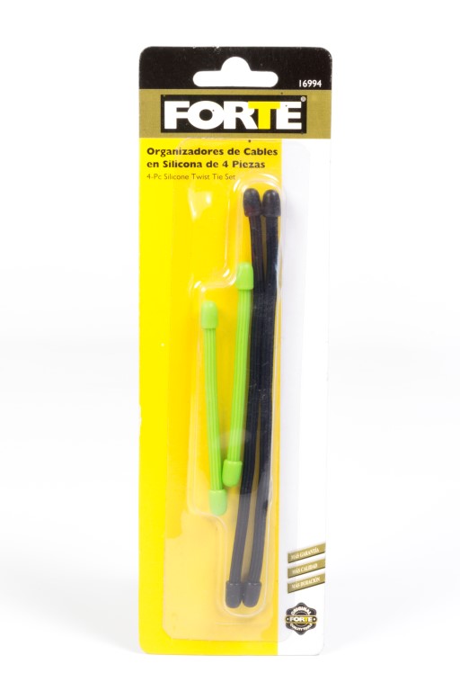 Organizadores de cable en silicona de 4 piezas. Indicado para amarrar y organizar cualquier objeto que lo necesite. Para uso interior y exterior. Reutilizable. Contenido: 2 piezas verdes, diámetro 4.0mm x 3" y 2 piezas negras, diámetro 4.00mm x 8cm.