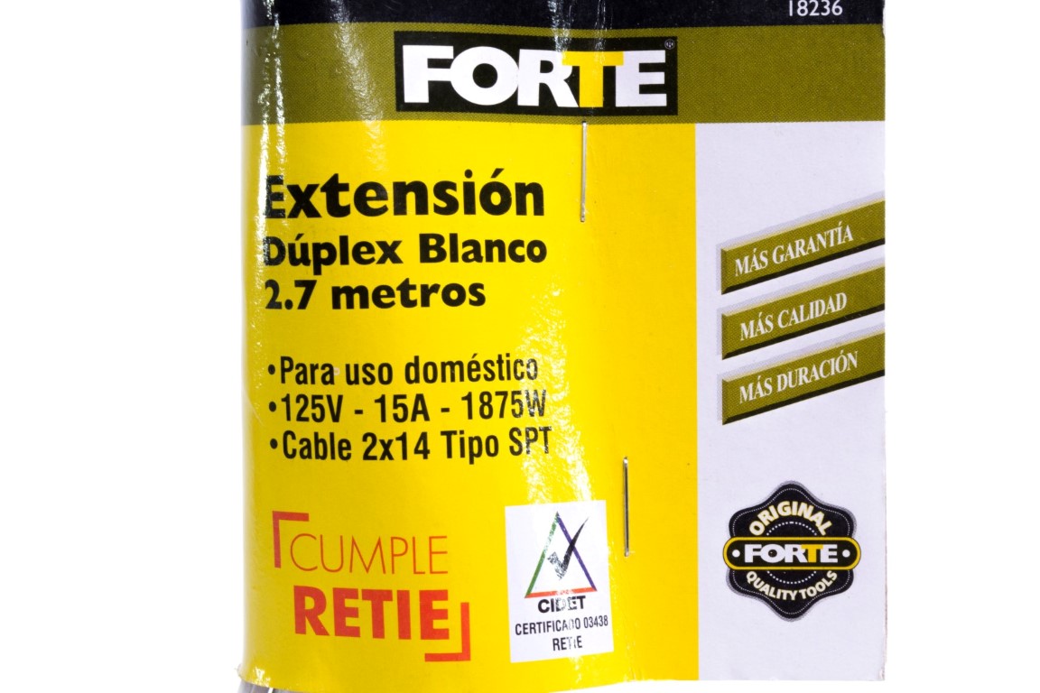 Extensión eléctrica cable dúplex 14 Macho bifilar 2.7mt 75° blanca