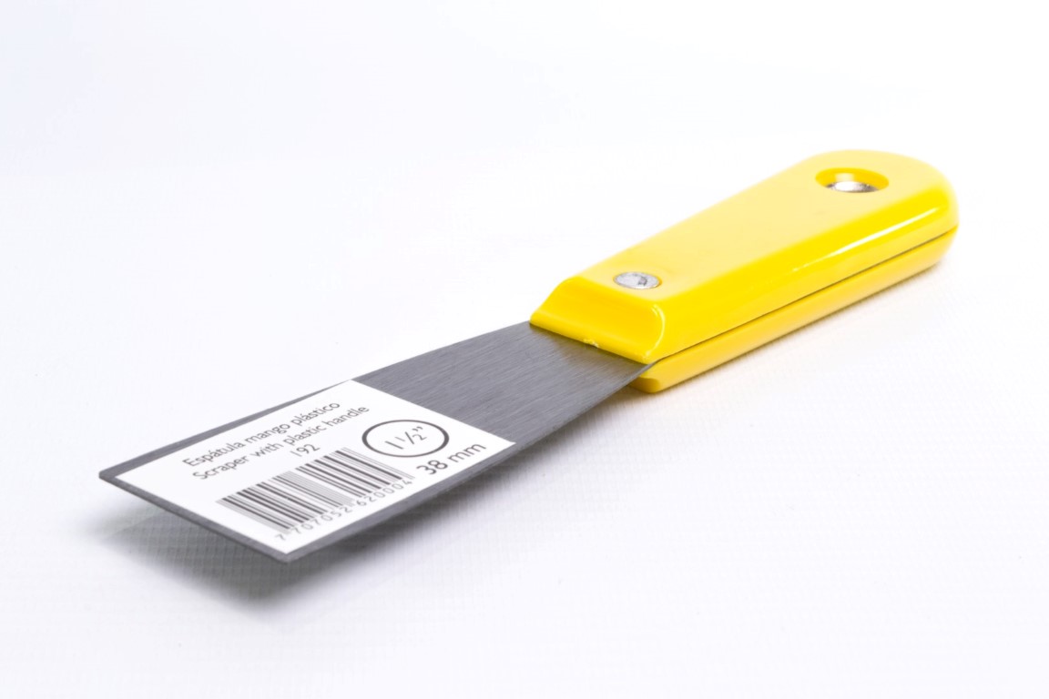 Fabricadas en acero al carbono, templado. Mayor durabilidad. Resistente a la flexión. Se utiliza principalmente para trabajos de pintura como: relleno de grietas y agujeros, preparación de mezclas y raspado de superficies. También se utiliza para trabajos en fontanería y albañilería, se recomienda no ser usadas en manipulación de alimentos. Mango Plástico.