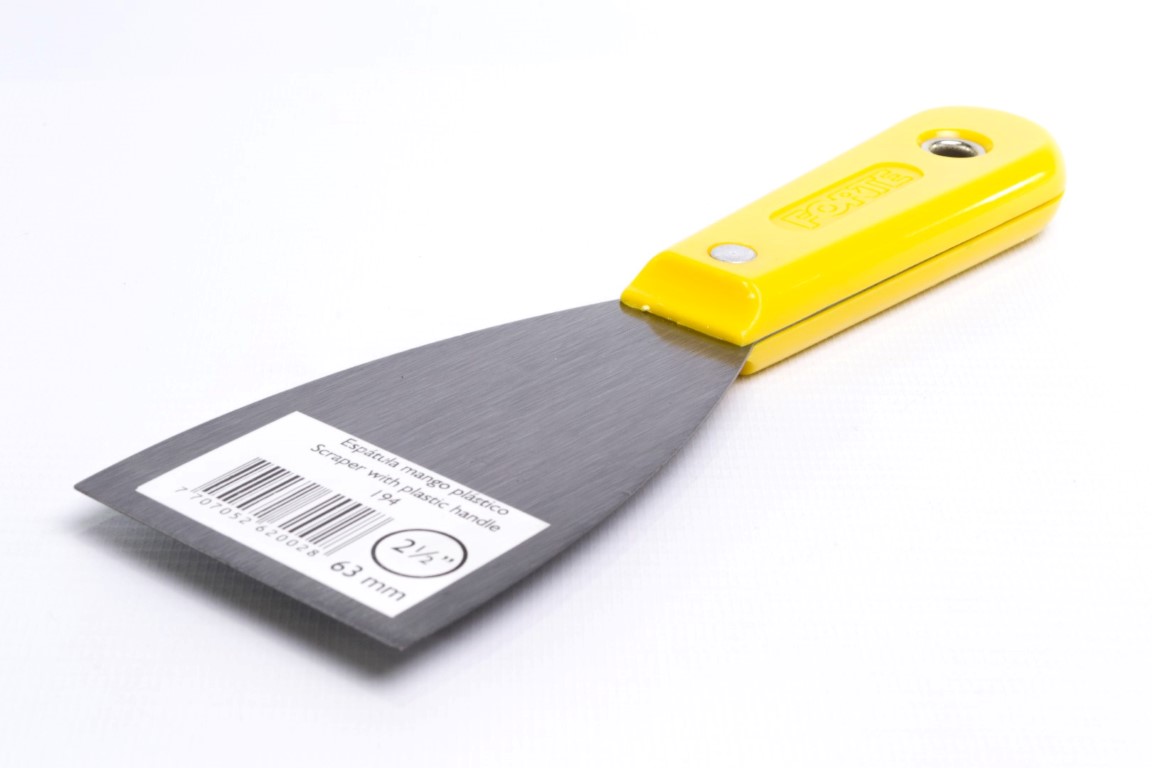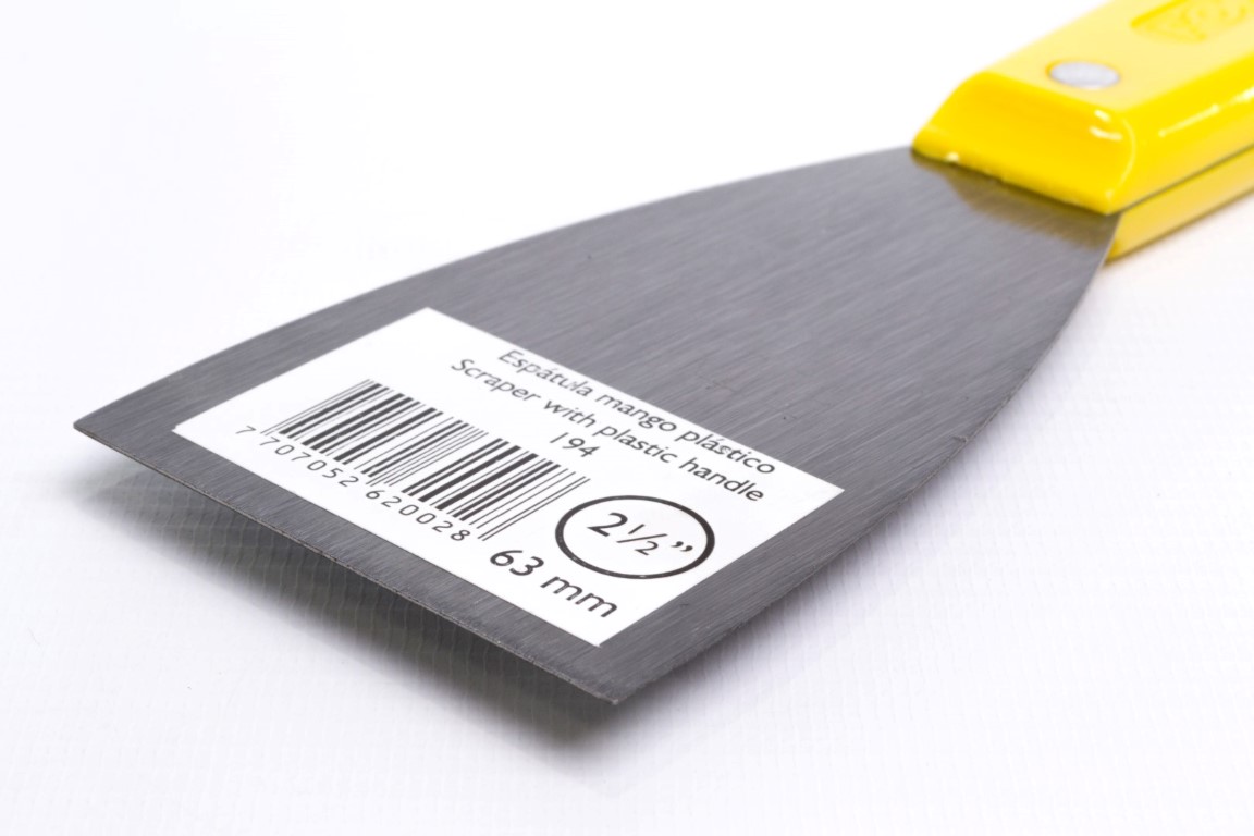 Fabricadas en acero al carbono, templado. Mayor durabilidad. Resistente a la flexión. Se utiliza principalmente para trabajos de pintura como: relleno de grietas y agujeros, preparación de mezclas y raspado de superficies. También se utiliza para trabajos en fontanería y albañilería, se recomienda no ser usadas en manipulación de alimentos. Mango Plástico.