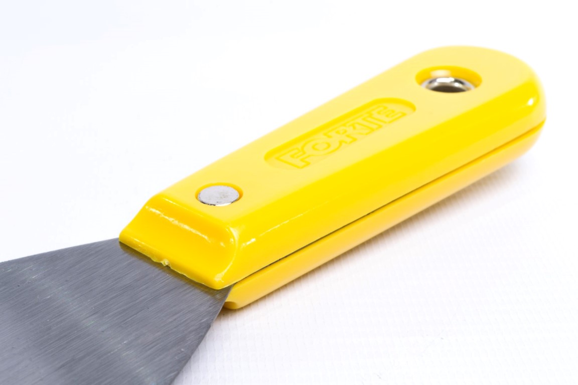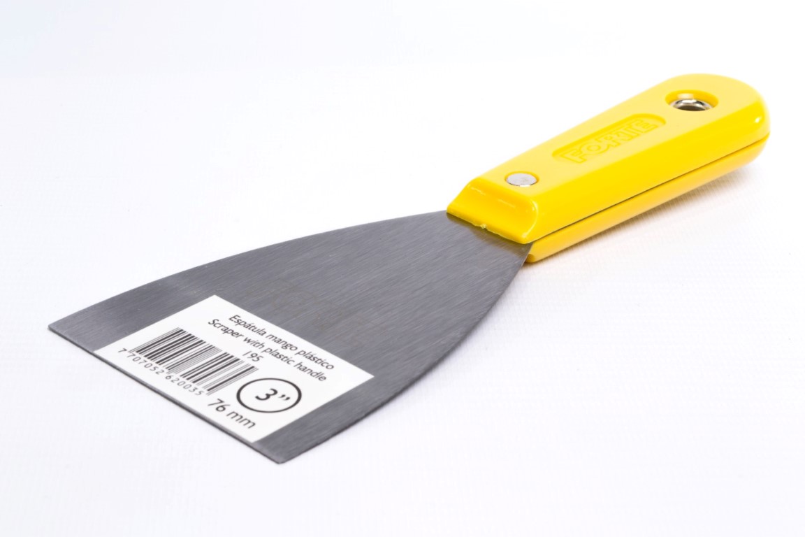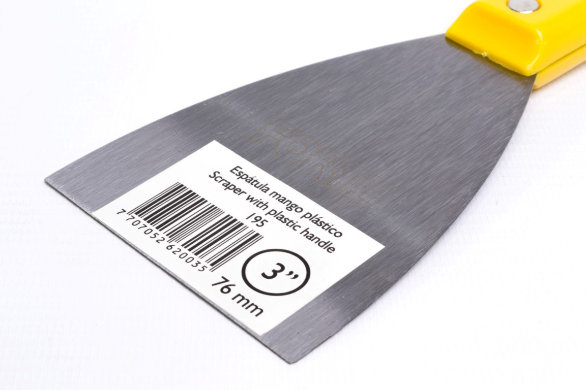 Fabricadas en acero al carbono, templado. Mayor durabilidad. Resistente a la flexión. Se utiliza principalmente para trabajos de pintura como: relleno de grietas y agujeros, preparación de mezclas y raspado de superficies. También se utiliza para trabajos en fontanería y albañilería, se recomienda no ser usadas en manipulación de alimentos. Mango Plástico.