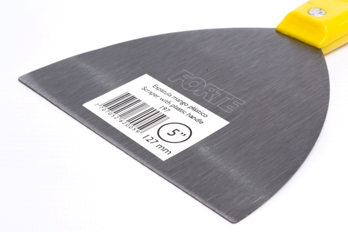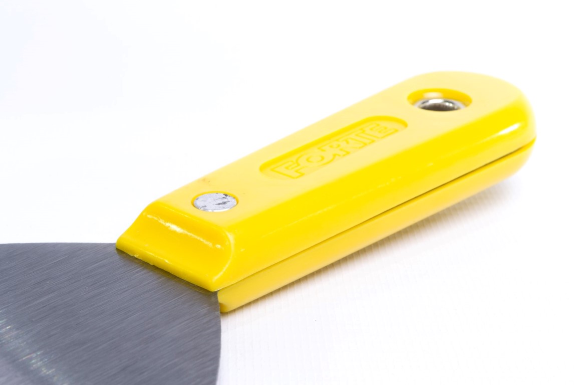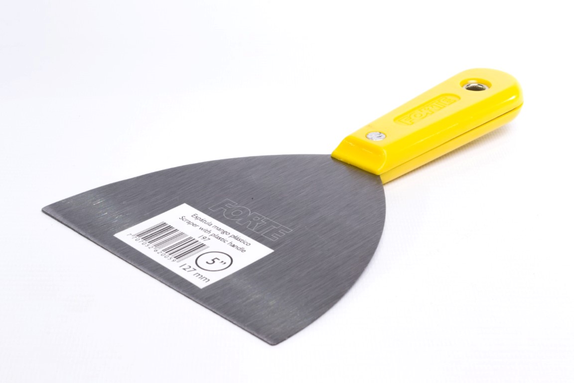 Fabricadas en acero al carbono, templado. Mayor durabilidad. Resistente a la flexión. Se utiliza principalmente para trabajos de pintura como: relleno de grietas y agujeros, preparación de mezclas y raspado de superficies. También se utiliza para trabajos en fontanería y albañilería, se recomienda no ser usadas en manipulación de alimentos. Mango Plástico.