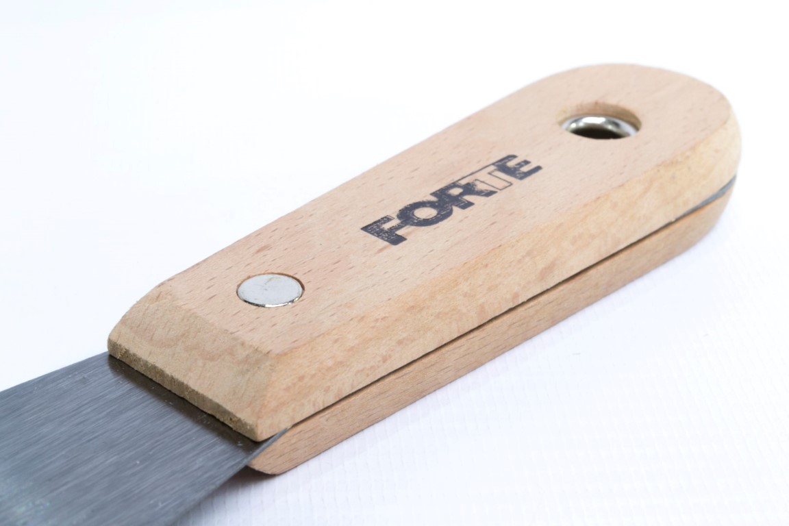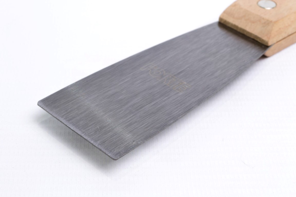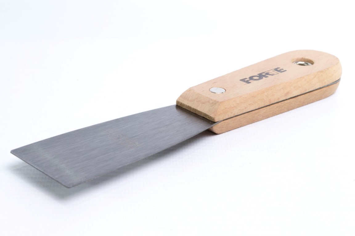 Fabricadas en acero al carbono, templado. Mayor durabilidad. Resistente a la flexión. Se utiliza principalmente para trabajos de pintura como: relleno de grietas y agujeros, preparación de mezclas y raspado de superficies. También se utiliza para trabajos en fontanería y albañilería, se recomienda no ser usadas en manipulación de alimentos. Mango de madera.
