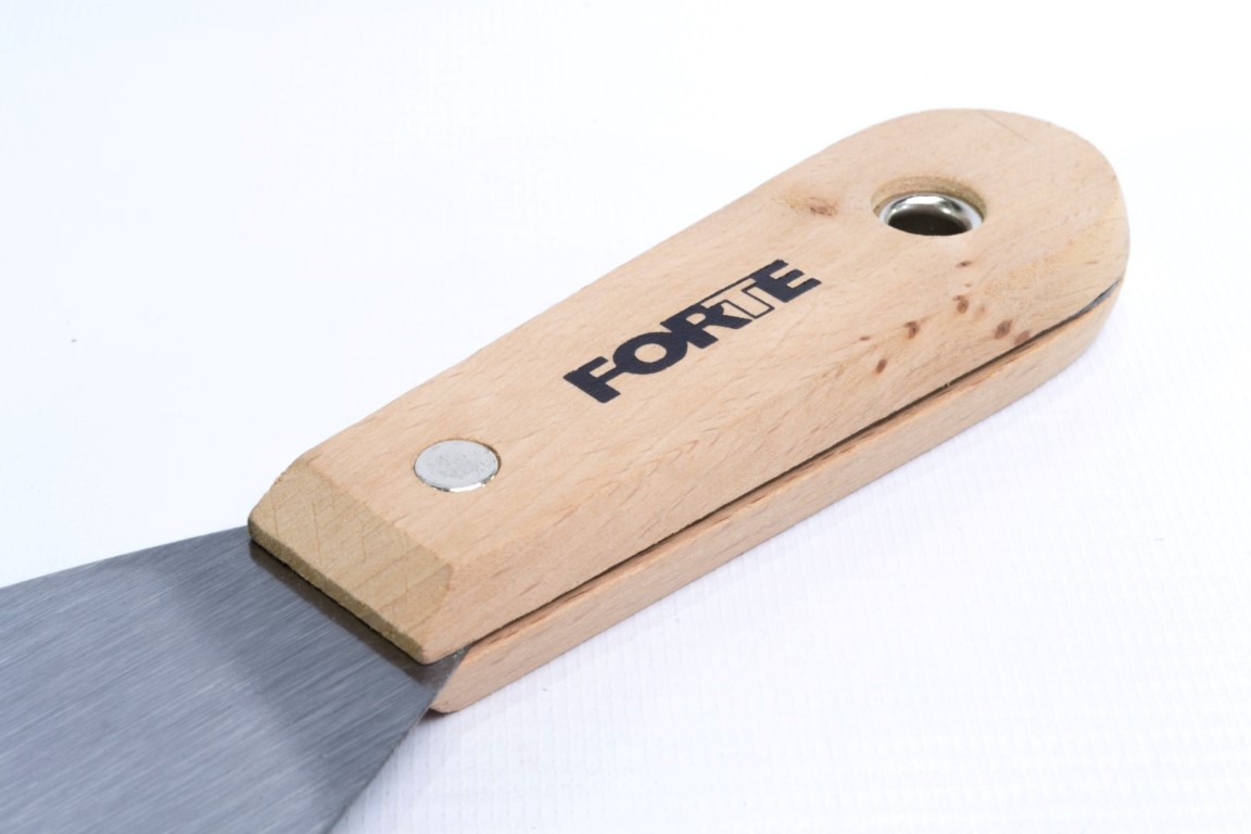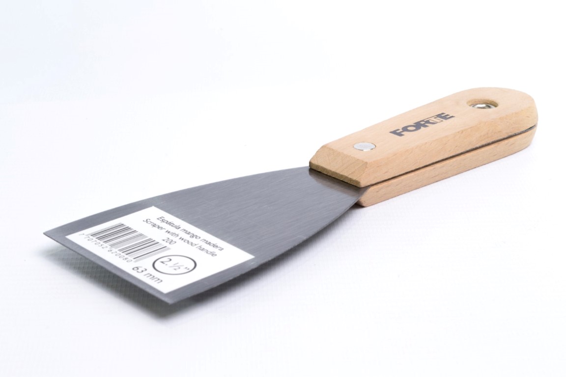 Fabricadas en acero al carbono, templado. Mayor durabilidad. Resistente a la flexión. Se utiliza principalmente para trabajos de pintura como: relleno de grietas y agujeros, preparación de mezclas y raspado de superficies. También se utiliza para trabajos en fontanería y albañilería, se recomienda no ser usadas en manipulación de alimentos. Mango de madera.