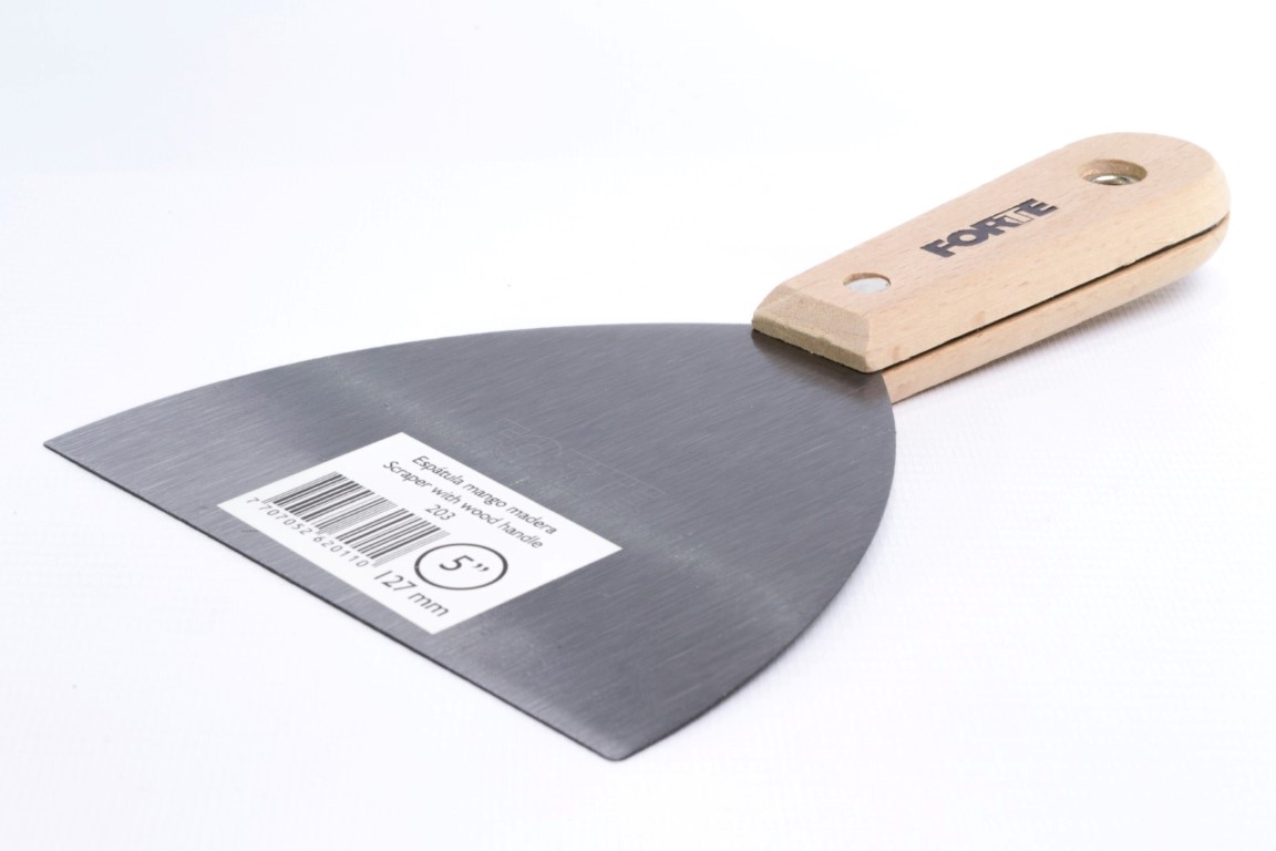 Fabricadas en acero al carbono, templado. Mayor durabilidad. Resistente a la flexión. Se utiliza principalmente para trabajos de pintura como: relleno de grietas y agujeros, preparación de mezclas y raspado de superficies. También se utiliza para trabajos en fontanería y albañilería, se recomienda no ser usadas en manipulación de alimentos. Mango de madera.