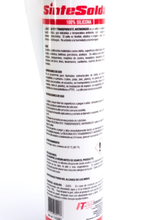 Sellante antihongos para uso interior y exterior. Funciona para todo tipo de uniones. Evita la formación de hongos. Da a la unión hermeticidad y pegado flexible. Resistente a la humedad e intemperie. Presentación por 280 ML. Ref 1103001 de ITW