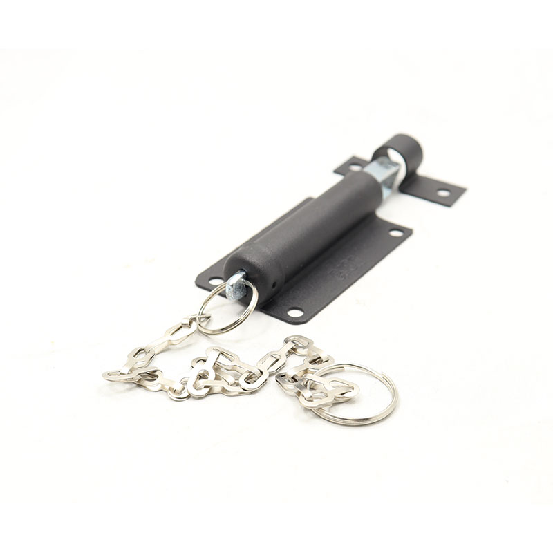 Picaporte de cadena disponible en tamaños de 3" y 4". Fabricado en acero Cold Rolled calibre 18 CT, lo que asegura alta resistencia y durabilidad. Acabado negro y niquelado para mayor protección contra la corrosión y un aspecto elegante. Ideal para bloquear puertas de doble ala, closets en la parte superior, ventanas y otros tipos de puertas. Viene con tornillos incluidos para facilitar la instalación en aplicaciones tanto horizontales como verticales.