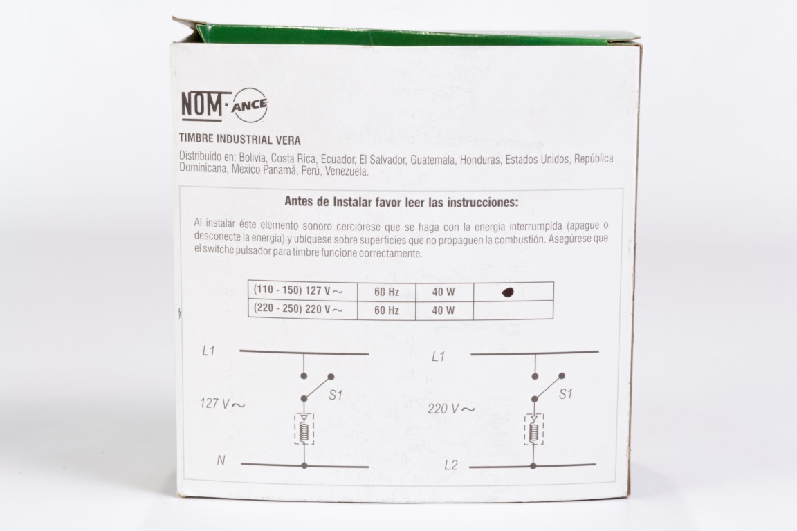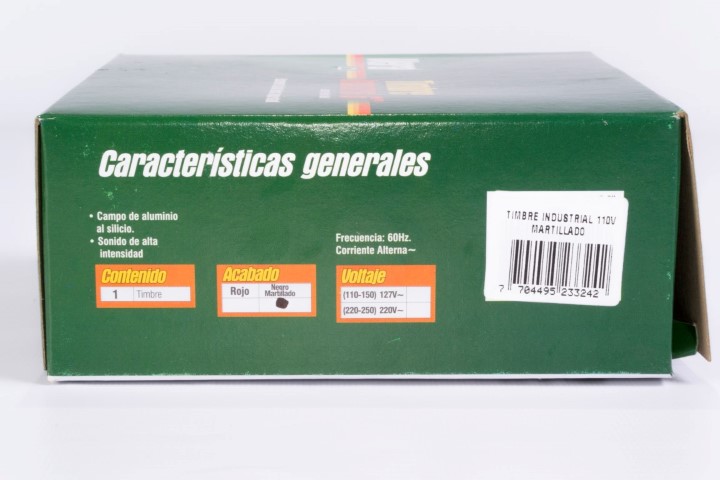 Timbre industrial de 110/150 voltios, ideal para entornos industriales, colegios y bodegas. Cuenta con una campana en aluminio fundido para mayor resistencia y durabilidad, y una base en poliestireno, disponible en varios colores. Diseñado para ofrecer una señalización sonora potente y confiable en espacios de alto tráfico.