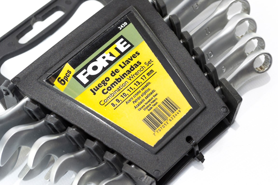 Fabricados en acero al Cromo Vanadio. Acabado satinado. Cumplen normas con estándares internacionales: ANSI. Sistema de puntas redondeadas (apoya el esfuerzo en lo lados y no en las esquinas de las tuercas, evitando que estas se desgasten. Incluye 6 piezas en milímetros de 8, 9, 10, 11, 13, 17 (mm). Empaque en blíster.