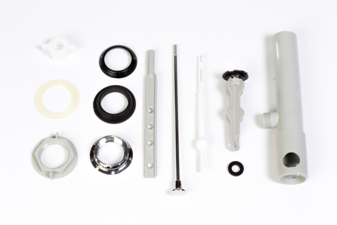 * Desagüe plástico con rebose.* acabado cromo/gris.* Plástico de ingeniería.