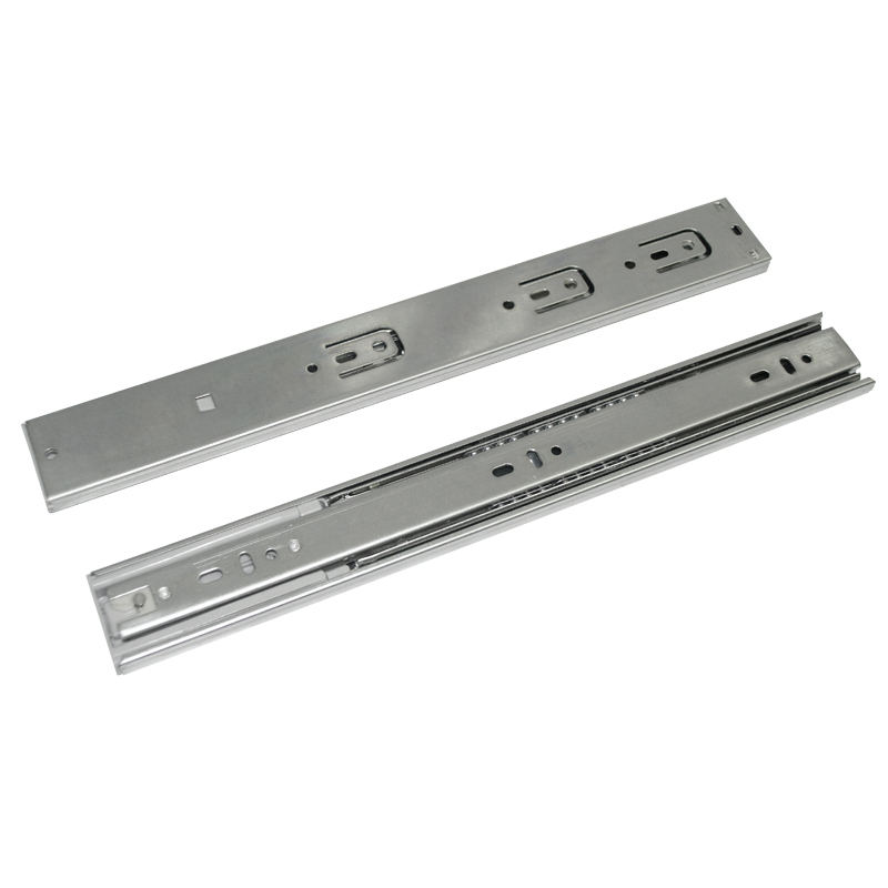 Riel de extensión total con cierre lento, diseñado para garantizar un deslizamiento suave y silencioso. Fabricado en acero con recubrimiento galvanizado para mayor resistencia y durabilidad. Soporta hasta 30 kg por par y cuenta con una vida útil de 15.000 ciclos de uso. Ideal para cajones en escritorios, muebles comerciales, residenciales y gabinetes de cocina donde se requiere una apertura completa con cierre amortiguado. Disponible en longitudes de 300, 350, 400, 450 y 500 mm.