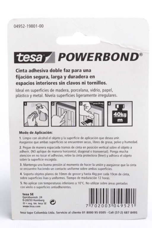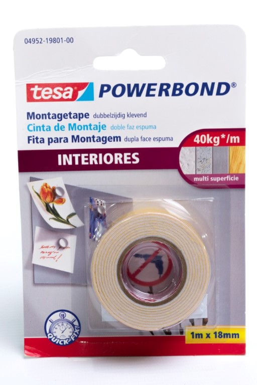 Cinta doble faz de uso interior para el montaje permanente de objetos sobre superficies lisas y rugosas. Soporte de espuma y adhesivo de caucho sintético para una fuerte adhesión de objetos planos con pesos de hasta 4 kg por cada diez centímetros de cinta. Resistente al deslizamiento. Excelente fuerza de cizallamiento y resistencia a las cargas. No se amarillea con el tiempo.