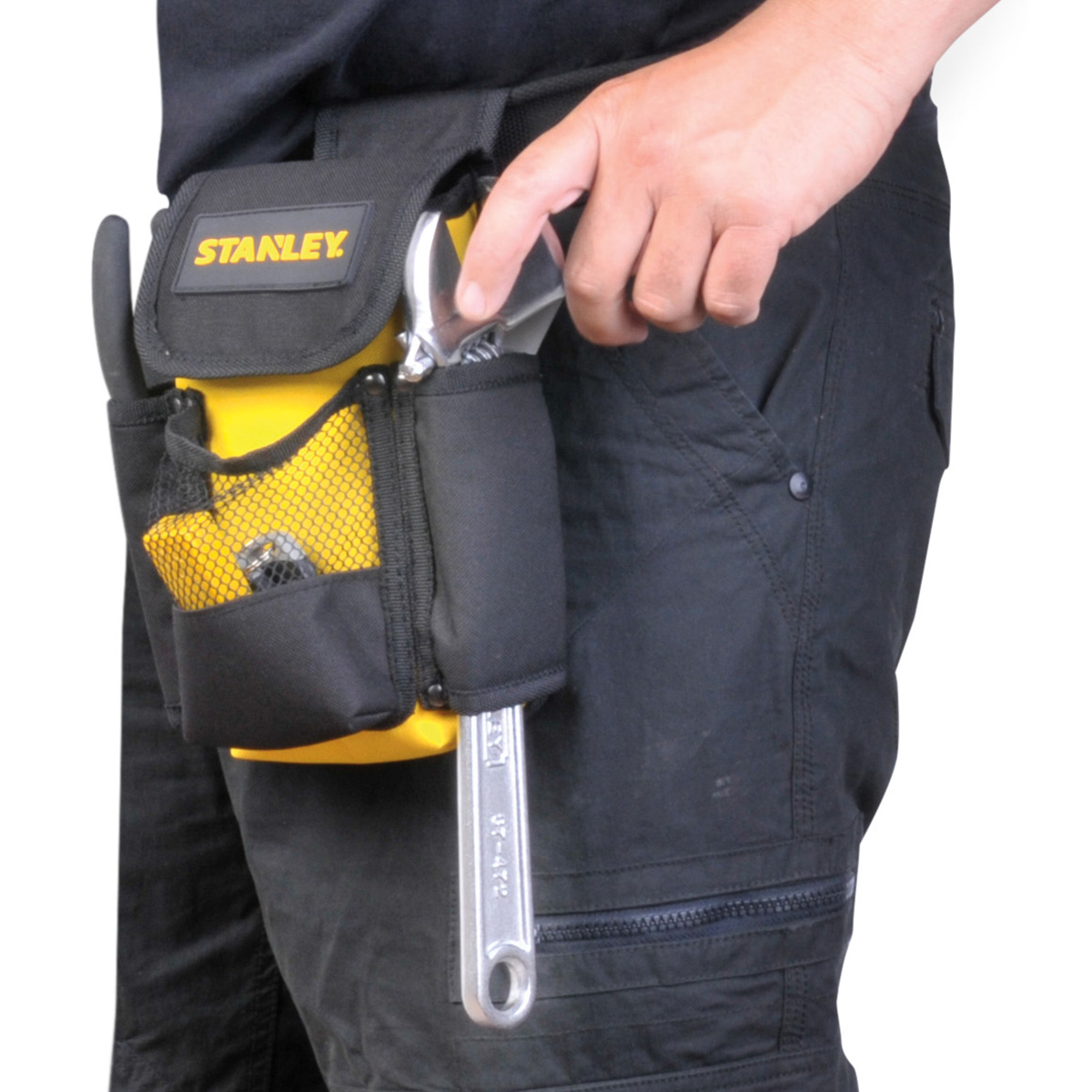 Ref. STST509104 . Bolsa compacta y versátil - gancho lateral para martillos o productos similars - bolsillo de malla frontal para visibilidad - Dimensiones: 9" X 4.1/2" X 2"