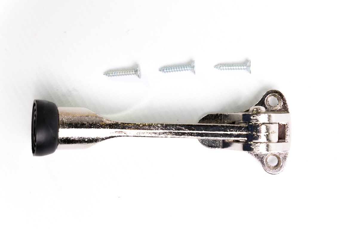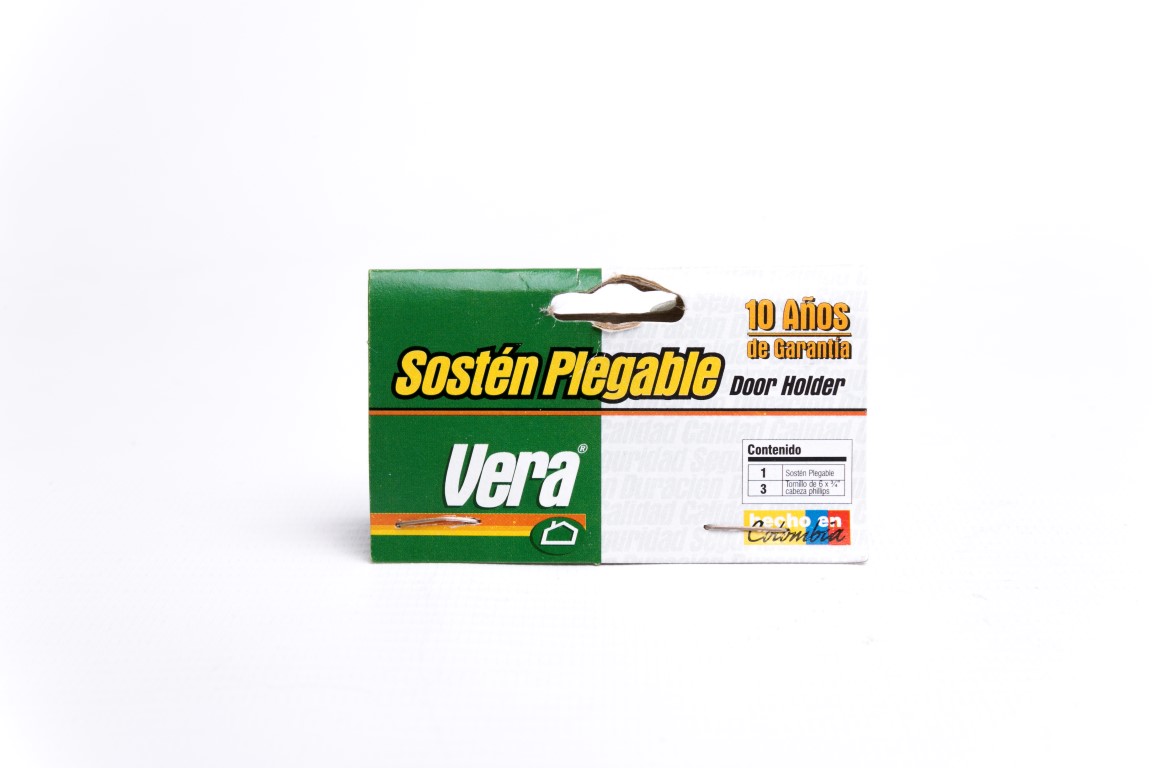 Sostén plegable con acabado latonado, niquelado, pavonado y negro. Fabricado en material Zamak para garantizar durabilidad y resistencia. Diseñado para su uso en puertas metálicas o de madera. Cuenta con un tope en P.V.C. que proporciona mayor agarre, mejorando su funcionalidad y seguridad. Ideal para aplicaciones en puertas de diferentes tipos y materiales, brindando una sujeción firme y confiable.