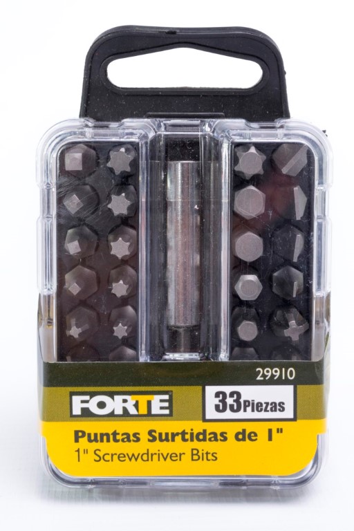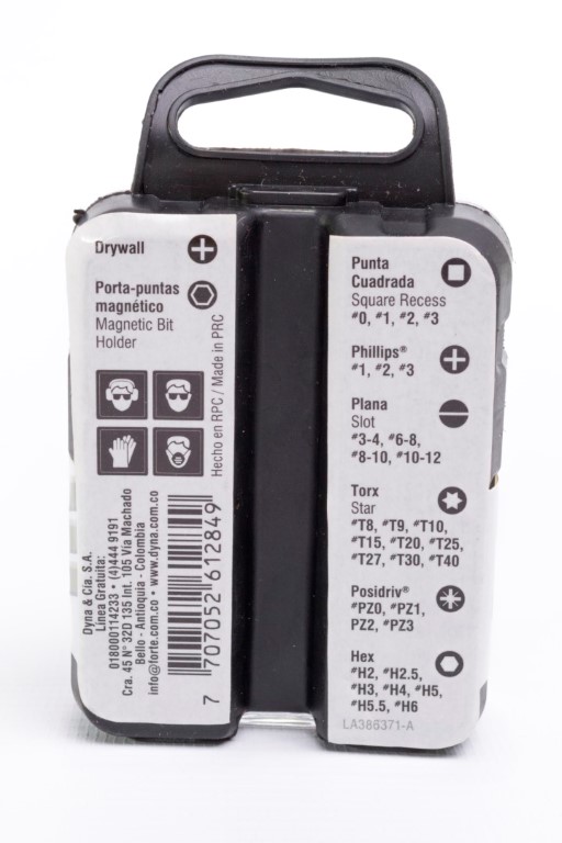 Practico surtido de puntas de 1": cuadradas: N° 0, N° 1, N° 2, N° 3 + Phillips®: N° 1, N° 2, N° 3 + planas: N° 3-4, N° 6-8, N° 8-10, N° 10-12 + Torx: T8, T9, T10, T15, T20, T25, T27, T30, T40 + Pozidriv®: PZ0, PZ1, PZ2, PZ3 + Hexagonal: H2, H2.5, H3, H4, H5, H5.5, H6 + Punta para drywall Phillips N° 2 de 1" + Porta-puntas magnético ? Fabricadas en acero S2 endurecido? Ideales para tareas de atornillado de propósito general. ? En caja transparente para mantenerlas organizadas y listas para usar.