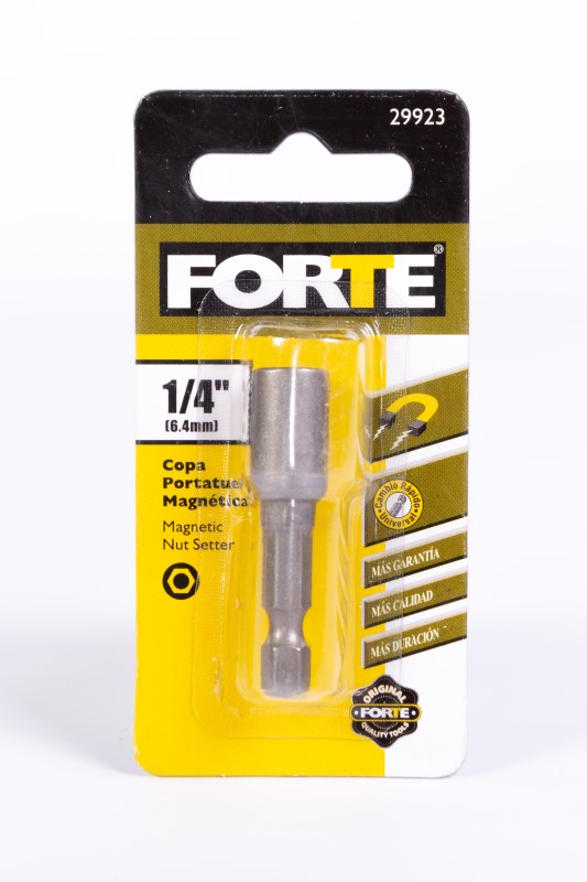 Práctico Porta tuercas magnético que facilita el atornillado de tornillos y tuercas con cabeza hexagonal, fijándolos mientas comienza el trabajo. Posee mango universal de 1/4" adecuado para los sistemas de cambio rápido y para los taladros y atornilladores eléctricos.