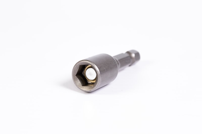 Práctico Porta tuercas magnético que facilita el atornillado de tornillos y tuercas con cabeza hexagonal, fijándolos mientas comienza el trabajo. Posee mango universal de 1/4" adecuado para los sistemas de cambio rápido y para los taladros y atornilladores eléctricos.