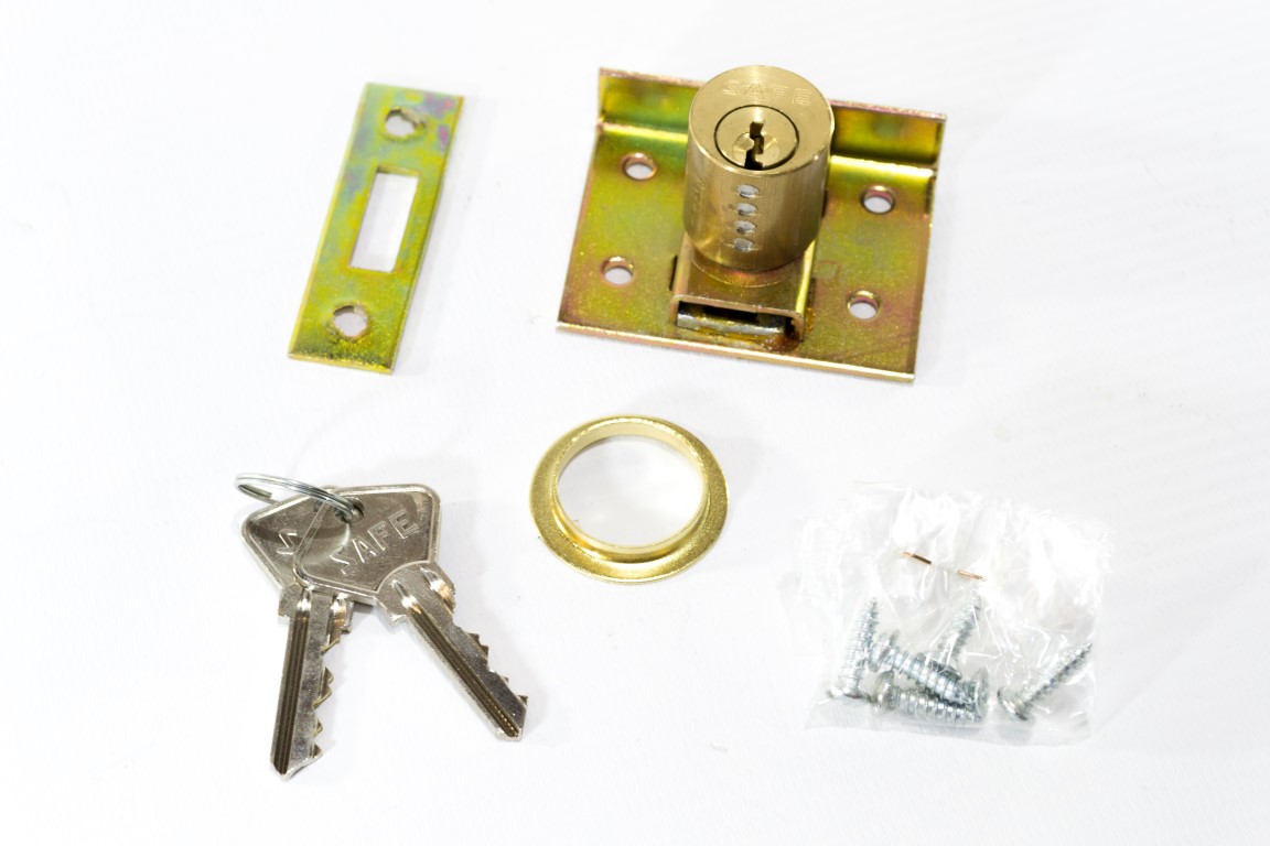 Cerradura 112/30, diseño de incrustar, especial para muebles de madera. Acabado niquelado y cobre. Longitud de 30 mm. Cilindro en latón macizo de cuatro pines, porta cilindro niquelado o latón puro, pintado con laca transparente brillante y cuerpo en cold rolled con recubrimiento galvánico, homologación de llaves.