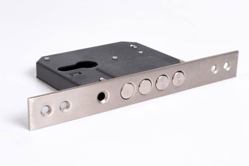 Cerradura auxiliar de incrustar diseñada para reforzar la seguridad en puertas batientes de entrada principal. Cuenta con un centro de instalación de 50 mm y cuatro pasadores de acero endurecido que garantizan alta resistencia ante intentos de intrusión. Su cilindro de 60 mm permite apertura con llave desde ambos lados. Incluye escudos de cilindro y accesorios para una instalación sencilla y firme. Fabricada en acero acabado inoxidable para mayor durabilidad y resistencia a la corrosión.