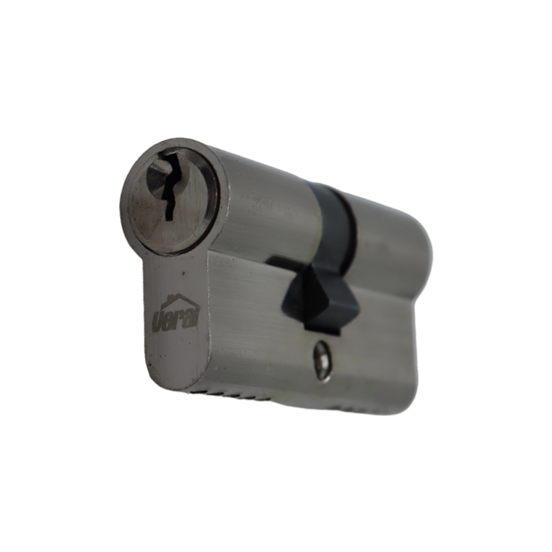 Cilindro doble tipo pera para cerradura de incrustar, con una longitud de 60 mm (30+30 mm centrado), cuenta con un sistema de cerradura convencional de 5 pines que proporciona mayor seguridad. Fabricado con un acabado en níquel satinado, es compatible con cerraduras de incrustar estándar. Incluye tres llaves y accesorios de instalación, garantizando un montaje sencillo y eficiente.