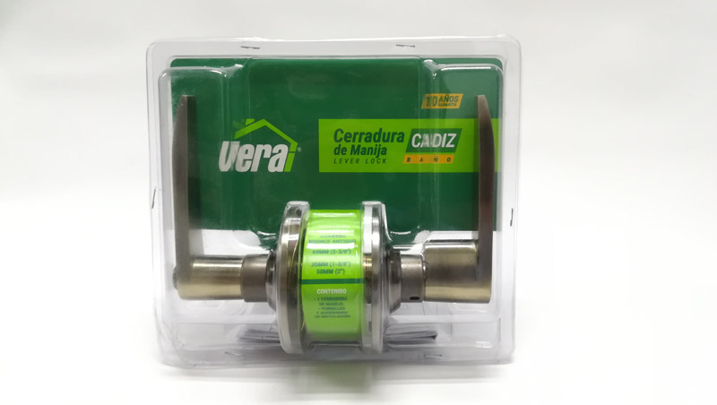 Cerradura Cilíndrica con Manija recta acabado Bronce Antiguo Nuovo, Diseñada para ofrecer seguridad y estilo, esta cerradura cilíndrica cuenta con un elegante acabado en bronce antiguo que aporta un toque clásico y sofisticado. Su cilindro de zamak (Alcoba, entrada) garantiza un mecanismo confiable, mientras que su centro de instalación de 60mm (2-3/8") y roseta de 65mm permiten una fácil instalación en puertas de 35 a 50mm de espesor. Incluye 3 llaves de acero con acabado niquelado.