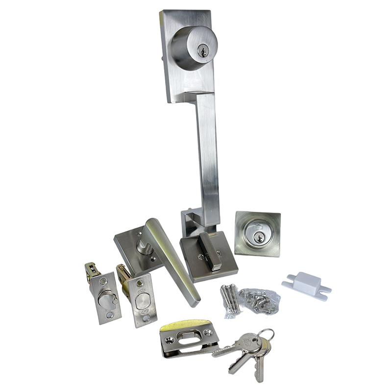 Juego de entrada principal para bloquéo instantáneo de puertas. Apertura desde el exterior únicamente con llave. Función de misma llave en la cerradura y el cerrojo auxiliar. Se acciona desde el interior con manija en la cerradura y con perilla en el cerrojo. Cuerpo fabricado en aleación de zinc de alta resistencia, mecanismo interior y llaves en latón. Distancia de instalación al canto de la puerta (backset) ajustable de 60 a 70mm. Para instalación en puertas con espesores entre los 40 y 55mm.