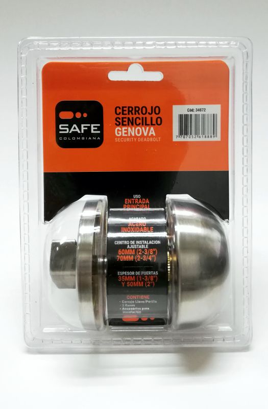 Cerrojo De Seguridad Sencillo Llave-Perilla En Acabado Acero Inox Genova