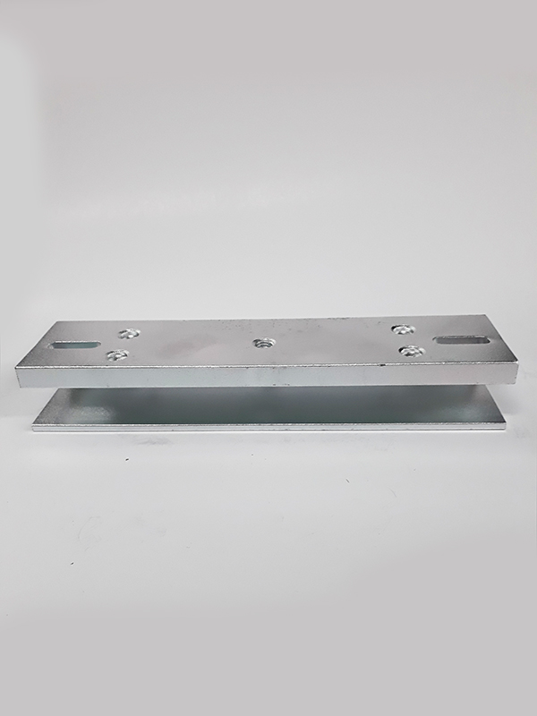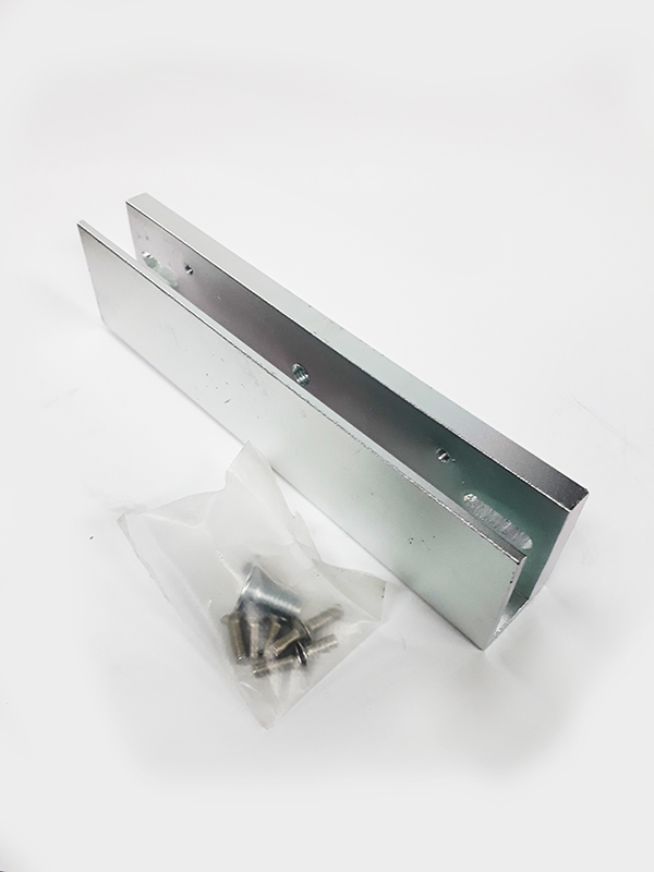 Soporte en aluminio para electroimán. Contine accesorios para instalación y hoja técnica. Disponible para electroimanes de 400 y 600 libras. De los electroimanes en puertas de vidrio.