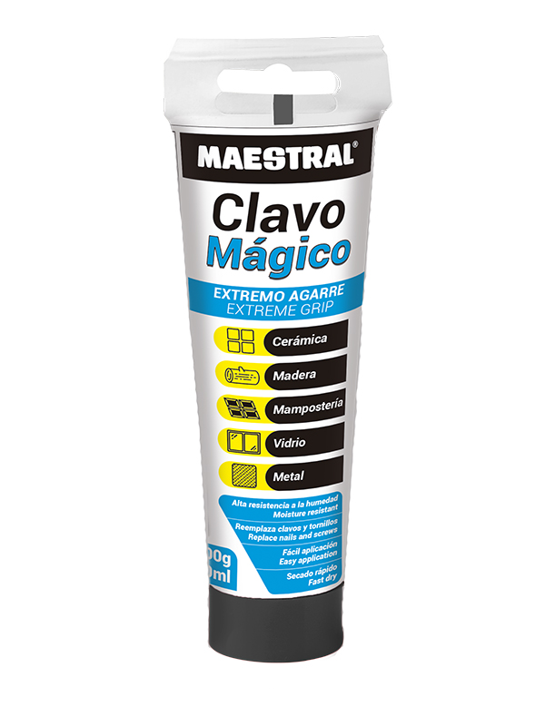 El clavo magico maestral es un adhesivo creado para la fijacion de adornos de icopor, madera y corcho. colocar ceramicas sueltas, alfombras y baldosas de vinilo. fijar objetos de construccion prefabricados, molduras de poliuretano, marcos, vidrios. pegar accesorios de bano y cocina, etc.