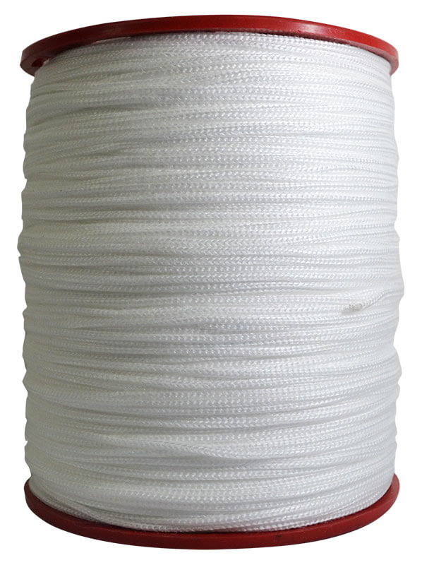 Carreta en forma cilíndrica con cuerda de nylon trenzada en su exterior de color blanco, poseen un alma de filamentos sin procesar,ademas de poliester y polipropileno texturizado. Dimensiones del producto: Carreta por 350 mts calibre 2 Ancho:15 cms, Largo: 17 cms. Producto utilizado en: ganaderia, agropecuarios,carpas,amarres,camiones,mallas y artesanias.