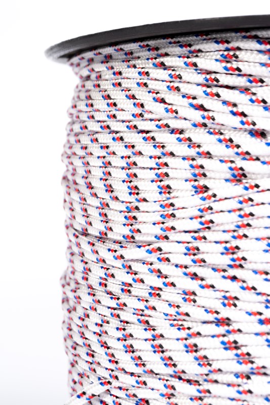 Carreta en forma cilíndrica con cuerda de nylon trenzada en su exteriorde color blanca con pintas , poseen un alma de filamentos sin procesar,ademas de poliester y polipropileno texturizado. Dimensiones del producto: Carreta por 350 mts calibre 2 Ancho:15 cms, Largo: 17 cms. Producto utilizado en: ganaderia, agropecuarios,carpas,amarres,camiones,mallas y artesanias.