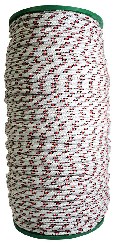 Carreta en forma cilíndrica con cuerda de nylon trenzada en su exterior de color blanca con pintas, poseen un alma de filamentos sin procesar,ademas de poliester y polipropileno texturizado. Dimensiones del producto: Carreta por 150 mts calibre 6 Ancho:15, cms, Largo:33 cms. Producto utilizado en: ganaderia, agropecuarios,carpas,amarres,camiones,mallas y artesanias.