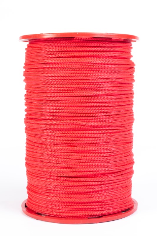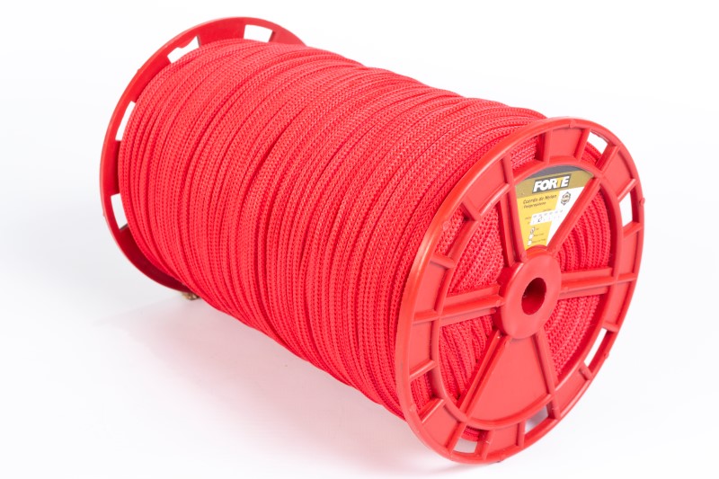 Carreta en forma cilíndrica con cuerda de nylon trenzada en su exterior de color rojo, poseen un alma de filamentos sin procesar,ademas de poliester y polipropileno texturizado. Dimensiones del producto: Carreta por 350 mts calibre 3 Ancho:15 cms, Largo:22 cms. Producto utilizado en: ganaderia, agropecuarios,carpas,amarres,camiones,mallas y artesanias.