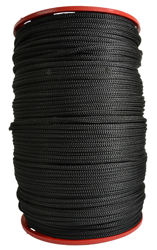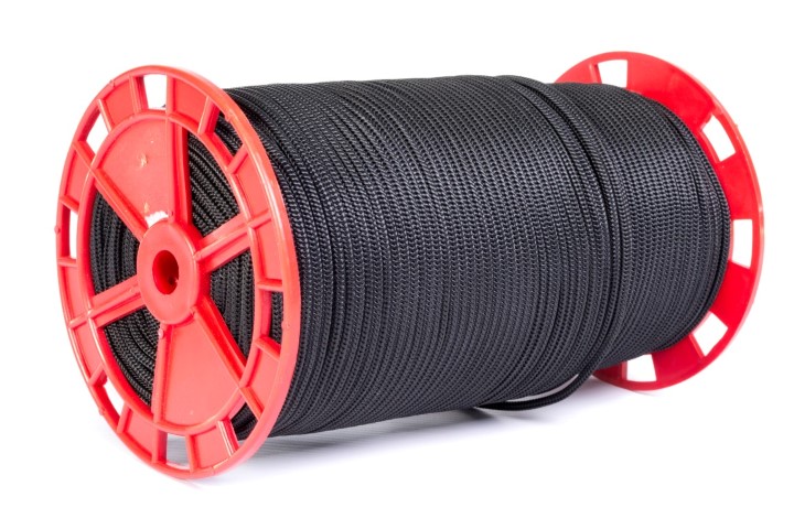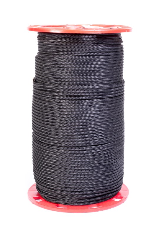 Carreta en forma cilíndrica con cuerda de nylon trenzada en su exterior de color negro. Poseen un alma de filamentos sin procesar,ademas de poliester y polipropileno texturizado. Dimensiones del producto: Carreta por 250 mts calibre 4 Ancho:15, cms, Largo:22cms. Producto utilizado en: ganaderia, agropecuarios,carpas,amarres,camiones,mallas y artesanias.