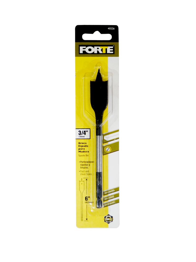 También conocido como Broca plana o paleta. Las brocas Espada Forte® para madera, permiten realizar perforaciones rápidas en maderas de todo tipo. Su mango hexagonal es ideal tanto para taladros convencionales como para taladros y atornilladores de cambio rápido.