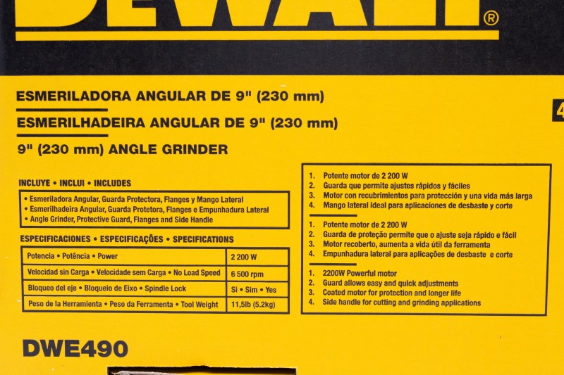 Antes D28490. Pulidora Industrial de 9" de diámetro del disco, con poderoso Motor de 2.200W y 20 Amperios. Velocidad sin carga 6.500RPM. Eje 5/8". Motor protegido contra abrasión. Interruptor tipo Gatillo. Incluye: Guarda, Mango y disco.