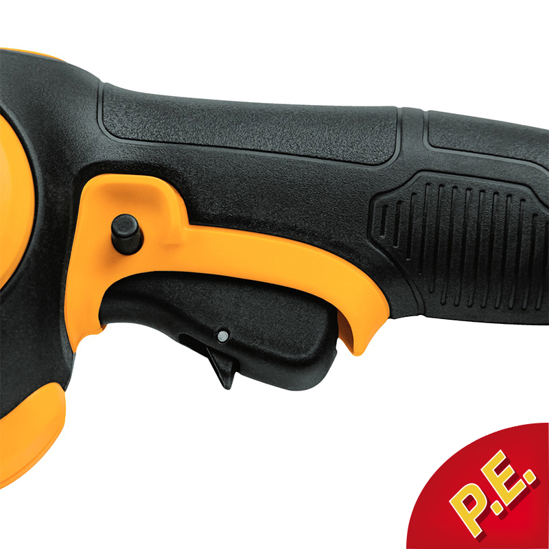 Potente motor de 2,400W. Mango antivibración. Sistema Tough Cord ® para el cable de alimentación de uso rudo y durabilidad. Guarda sin llave que no requiere uso de herramienta. Carbones de larga vida 2X. Guarda y flanges planos. Más liviana. Mejor balance. Agarre más confortable con el mango recubierto de goma.