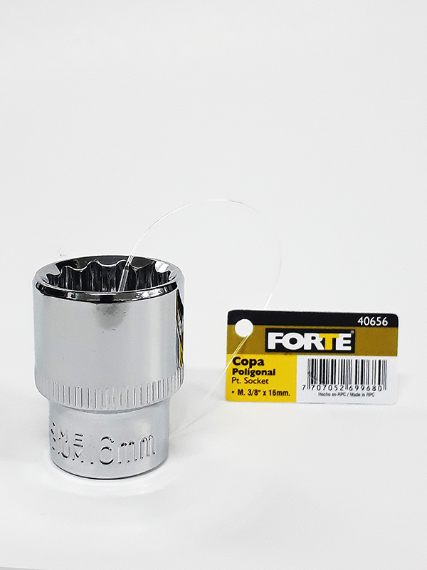 Fabricados en Acero Aleado al Cromo Vanadio. Su acabado cromado pulido tipo espejo, brinda excelente resistencia a la corrosión y una gran presentación. Su Sistema de puntas redondeadas apoya el esfuerzo en los lados y no en las esquinas de las tuercas, evitando que estas se desgasten. Cumple estándares internacionales ANSI con excelente resistencia al torque, lo que le permite ser útil para trabajos pesados. Poligonal = 12 puntas de agarre X Mando 3/8" = Diámetro de manejo X Diámetro 16mm = Diámetro de agarre de la pieza.